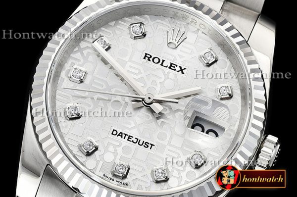 Rolex Datejust Man DJ 36mm Oyst Fluted SS/SS Silver Anniv Diam DJF A3135