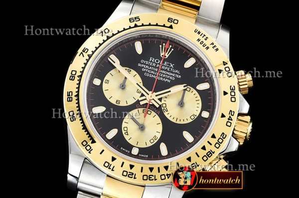 Rolex Daytona 116523 YG/SS Blk/Gold Stk OMF A7750 Mod